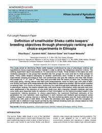 Elias Bayou, Aynalem Haile, Solomon Gizaw, Yoseph Mekasha. (22/2/2018). Definition of smallholder Sheko cattle keepers’ breeding objectives through phenotypic ranking and choice experiments in Ethiopia. African Journal of Agricultural Research, 13 (8), pp. 389-402.