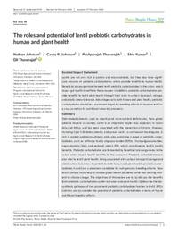 Diet‐related ailments, such as obesity and micronutrient deficiencies, have global adverse impacts on society. Lentil is an important staple crop, especially in South Asia and Africa, and has been associated with the prevention of chronic illnesses, including type II diabetes, obesity, and cancer. Lentil, a cool‐season food legume, is rich in protein and micronutrients while also containing a range of prebiotic carbohydrates, such as raffinose family oligosaccharides (RFOs), fructooligosaccharides, sugar alcohols (SAs), and resistant starch (RS), which contribute to lentil's health benefits. Prebiotic carbohydrates are fermented by beneficial microorganisms in the colon, which impart health benefits to the consumer. Prebiotic carbohydrates are also vital to lentil plant health, being associated with carbon transport/storage and abiotic stress tolerance. Important to both human and plant health, prebiotic carbohydrates in lentil are a prominent candidate for nutrigenomic breeding efforts. New lentil cultivars could help to combat global health problems, while also proving resilient to climate change. The objectives of this review are to: (a) discuss the benefits lentil prebiotic carbohydrates confer to human and plant health; (b) describe the biosynthesis pathways of two prominent prebiotic carbohydrate families in lentil, RFOs and SAs; and (c) consider the potential of prebiotic carbohydrates in terms of future nutritional breeding efforts.