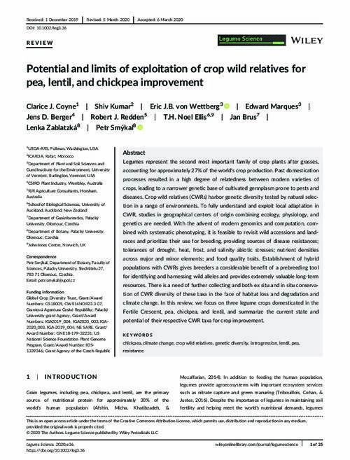 Potential and limits of exploitation of crop wild relatives for pea, lentil, and chickpea improvement