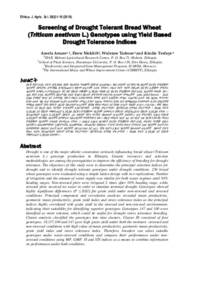 Screening of Drought Tolerant Bread Wheat (Triticum aestivum L.) Genotypes using Yield Based Drought Tolerance Indices