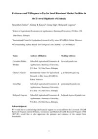 Preference and Willingness to Pay for Small Ruminant Market Facilities in the Central Highlands of Ethiopia