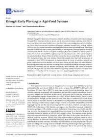 Droughts will increase in frequency, intensity, duration, and spread under climate change. Drought affects numerous sectors in society and the natural environment, including short-term reduced crop production, social conflict over water allocation, severe outmigration, and eventual famine. Early action can prevent escalation of impacts, requiring drought early warning systems (DEWSs) that give current assessments and sufficient notice for active risk management. While most droughts are relatively slow in onset, often resulting in late responses, flash droughts are becoming more frequent, and their sudden onset poses challenging demands on DEWSs for timely communication. We examine several DEWSs at global, regional, and national scales, with a special emphasis on agri-food systems. Many of these have been successful, such as some of the responses to 2015–2017 droughts in Africa and Latin America. Successful examples show that early involvement of stakeholders, from DEWS development to implementation, is crucial. In addition, regional and global cooperation can cross-fertilize with new ideas, reduce reaction time, and raise efficiency. Broadening partnerships also includes recruiting citizen science and including seemingly subjective indigenous knowledge that can improve monitoring, data collection, and uptake of response measures. More precise and more useful DEWSs in agri-food systems will prove even more cost-effective in averting the need for emergency responses, improving global food security.