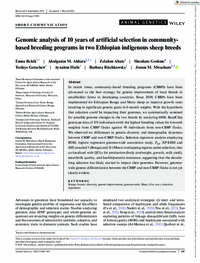 Emna Rekik, Abulgasim Ahbara, Zelalem Abate, Shenkute Goshme, Tesfaye Getachew, Aynalem Haile, Barbara Rischkowsky, Joram Mwacharo. (1/6/2022). Genomic analysis of 10 years of artificial selection in community-based breeding programs in two Ethiopian indigenous sheep breeds. Animal Genetics, 53 (3), pp. 447-451.