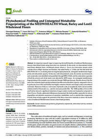 Giuseppe Romano, Laura Del Coco, Francesco Milano, Miriana Durante, Samuela palombieri, Francesco Sestili, Andrea Visioni, Jilal Abderrazek, Francesco Paolo Fanizzi, Barbara Laddomada. (30/12/2022). Phytochemical Profiling and Untargeted Metabolite Fingerprinting of the MEDWHEALTH Wheat, Barley and Lentil Wholemeal Flours. Foods, 11 (24).