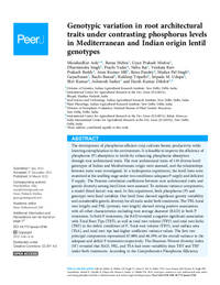 Genotypic variation in root architectural traits under contrasting phosphorus levels in Mediterranean and Indian origin lentil genotypes
