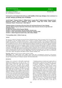 This study was conducted to determine the interaction between chickpea genotypes with the environment (GxE) on the yield stability and adaptability of desi type chickpea genotypes (Cicer arietinum L.). Seventeen chickpea genotypes were evaluated for two cropping years (2012/2013 – 2013/2014) at four locations i.e., eight environments (locations x years combination). Chickpea grain yield was significantly (p<0.01) affected by genotypes, the environments and GxE interaction, indicating that the varieties and the test environments were diverse. GxE was further partitioned by principal component axes. The first two principal components cumulatively explained 53.1% of the total variation, of which 32.7% and 20.4% were contributed by IPCA1 and IPCA2, respectively. This implies that the interaction of 17 chickpea genotypes with eight environments was predicted by the first two principal components. AMMI 1 biplot analysis showed five adaptive categories of genotypes based on similarities in their performance across environments. The AMMI 2 biplot generated using genotypes and environmental scores for the first two IPCAs revealed positioning of the five genotype groups (GC) into four sectors of the biplot. Among them, two genotypes in GC 5 (G5 and G11) exhibited high yields across environments, low IPCA1 scores, low AMMI stability value (ASV) and yield stability index (YSI). G5 was released as a new variety, ‘Dimtu’ and registered in the Official Varieties Catalogue of Ethiopia, 2016.