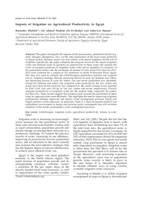 Impacts of Irrigation on Agricultural Productivity in Egypt