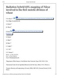 Filippo Bassi, Ajay Kumar, Qifeng Zhang, Etienne Paux, Eric Huttner, Andrzej Kilian, Rhoderissa Dizon, Catherine Feuillet, S. S. Xu, Shahryar F. Kianian. (31/8/2013). Radiation hybrid QTL mapping of Tdes2 involved in the first meiotic division of wheat. TAG Theoretical and Applied Genetics, 126 (8), pp. 1977-1990.