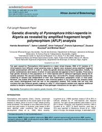 Genetic diversity of Pyrenophora tritici-repentis in Algeria as revealed by amplified fragement length polymorphism (AFLP) analysis
