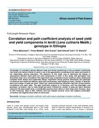 Correlation and path coefficient analysis of seed yield and yield components in Lentil (Lens culinaris Medik) genotypes in Ethiopia
