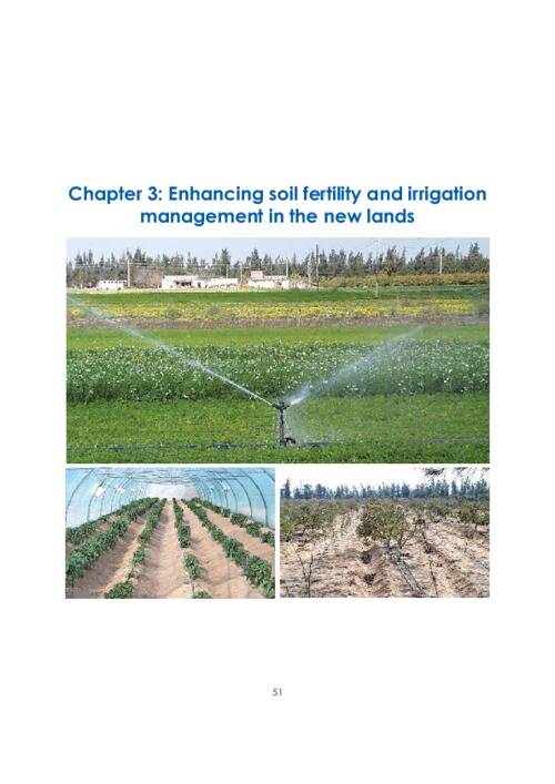 The new lands are represented by the El- Bustan area. The soils of the site are mostly sandy with low fertility and relatively low water holding capacity and crops are grown exclusively under irrigation using modern irrigation systems.