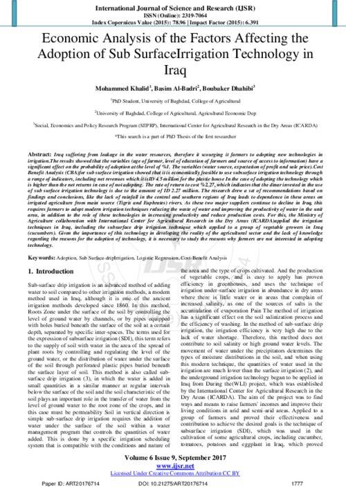 Economic Analysis of the Factors Affecting the Adoption of Sub Surface Irrigation Technology in Iraq