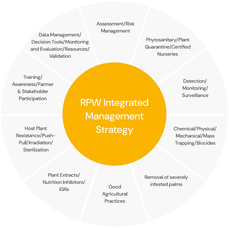 Developing eco-friendly traps, biopesticides, and natural predators to reduce RPW populations.