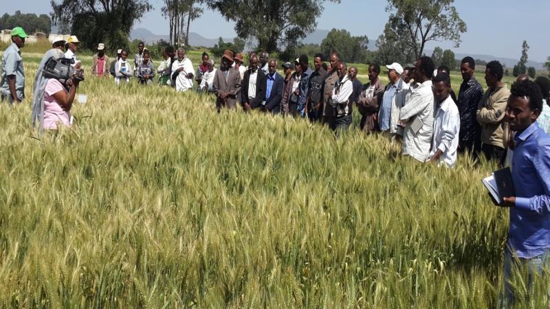 The limiting factors for wheat productivity in Eritrea include moisture stress, diseases, weed infestations, low yielding cultivars, weak seed systems and insufficient agricultural inputs. However, improved high-yielding wheat varieties are now offering Eritrean farmers a solution to their low productivity. These varieties are the result of a collaborative partnership involving the National Agricultural Research Institute (NARI) in Halhale and the ICARDA-managed wheat component of the CGIAR program ‘Support to Agricultural Research for Development of Strategic Crops in Africa’ ( SARD-SC ), funded by African Development Bank (AfDB). This partnership has conducted 13 research studies on improving wheat productivity, disease and incest resistance, and stress tolerance, culminating in the release of six new varieties suitable for Eritrean conditions.