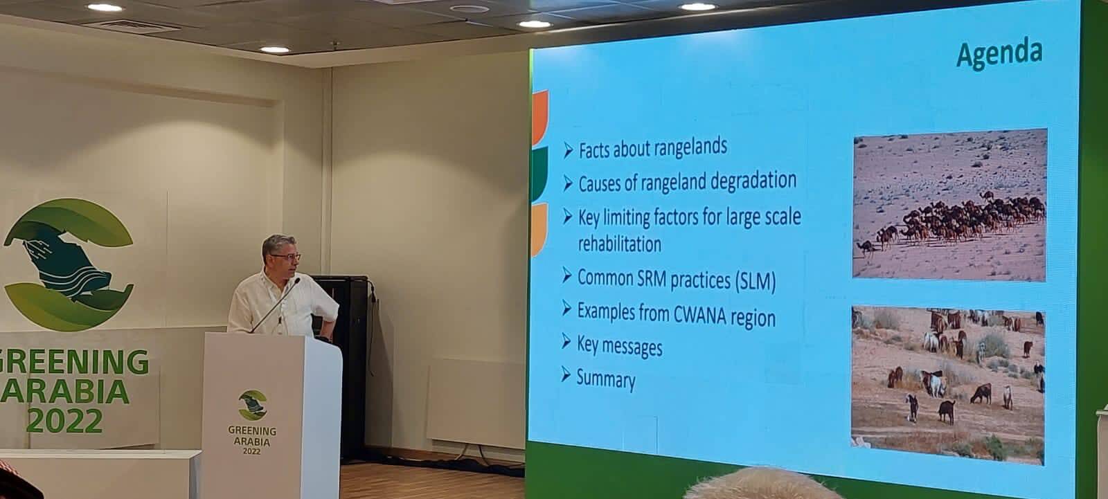 Dr. Louhaichi also presented three case studies from ICARDA's research for development carried out alongside its partners in the CWANA region, including the rehabilitation of the Jordanian Badia and the sustainable development of a silvopasture pilot site in central Tunisia.