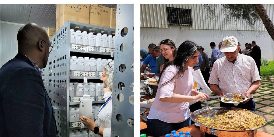 Guests visited the center's extensive research crop test fields to examine the latest climate-smart crop varieties and were shown the cutting-edge laboratories at ICARDA's Genebank, before being treated to a traditional lunch prepared by women's cooperatives in Lebanon. The meal represented a full range of rich and diverse Lebanese cuisine and was prepared with ingredients sourced by the women's cooperatives that ICARDA supports by improving quality certification and better access to local markets.