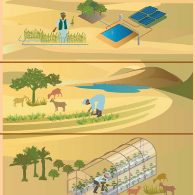 integrated crop/livestock systems, and efforts to reduce desertification while boosting pillar industries such as date palm production.