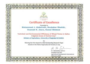 Abdulradh, M. J., Dhehibi, B., Kadhim Jbara, O. and Shideed, K. (2018). "Technical and Environmental Efficiency of Wheat Farms in Saline Irrigated Areas of Central Iraq"