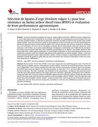 Sélection de lignées d’orge (Hordeum vulgare L.) pour leur résistance au barley yellow dwarf virus (BYDV) et évaluation de leurs performances agronomiques