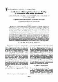 yield. Drought Susceptible Index (DSI) indicated G8 (IG5856) and G2 (ICC4958) to have the lowest DSI at both the locations. From the above investigation the landrace IG 5856 from Jordan was found to be most drought tolerant.