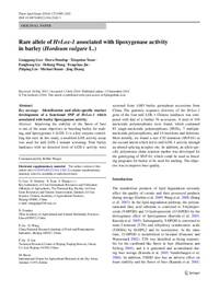 Identification and allele-specific marker development of a functional SNP of HvLox - 1 which associated with barley lipoxygenase activity. Abstract Improving the stability of the flavor of beer is one of the main objectives in breeding barley for malting, and lipoxygenase-1 (LOX-1) is a key enzyme controlling this trait. In this study, a modified LOX activity assay was used for null LOX-1 mutant screening. Four barley landraces with no detected level of LOX-1 activity were screened from 1,083 barley germplasm accessions from China. The genomic sequence diversity of the HvLox-1 gene of the four null LOX-1 Chinese landraces was compared with that of a further 76 accessions. A total of 104 nucleotide polymorphisms were found, which contained 83 single-nucleotide polymorphisms (SNPs), 7 multiple-nucleotide polymorphisms, and 14 insertions and deletions. Most notably, we found a rare C/G mutation (SNP-61) in the second intron which led to null LOX-1 activity through an altered splicing acceptor site. In addition, an allele-specific polymerase chain reaction marker was developed for the genotyping of SNP-61, which could be used in breeding programs for barley to be used for malting. The objective was to improve beer quality.