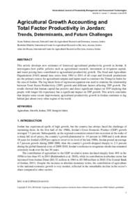 Agricultural Growth Accounting and Total Factor Productivity in Jordan: Trends, determinants, and future challenges