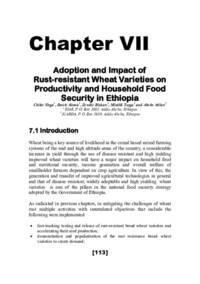 The chapter presents the adoption and diffusion of rust resistance varieties in terms of area with simultaneous reduction in the number of farmers and area under rust susceptible wheat varieties. Furthermore, factors influencing the adoption of disease resistant wheat varieties are examined, and the impacts of these technologies on wheat productivity, production, and household food security are shown. In addition, the study examined the mix and effectiveness of institutional innovations promoted in terms of variety releases, seed multiplication and delivery system.